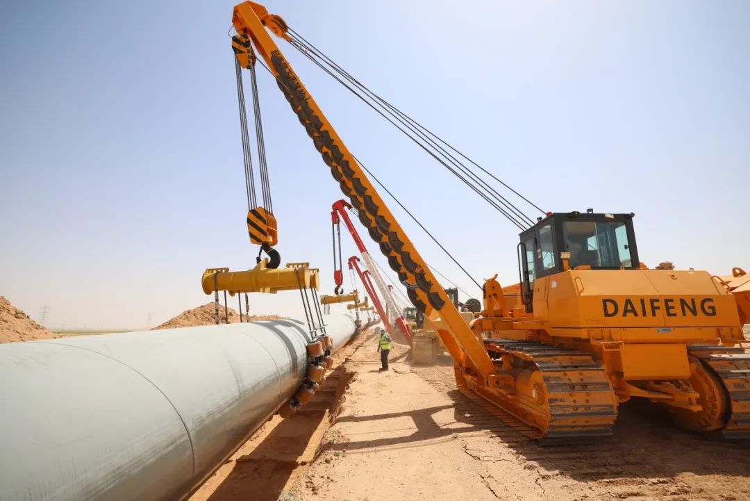 中蘇海工吊管機集群啟運,高溫戰(zhàn)力全開助建沙特石油動脈